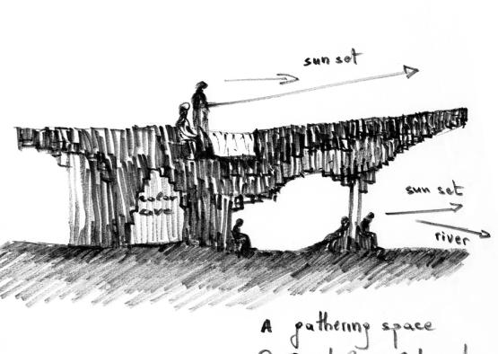 A meditative log pavilion to be built amongst the Tippet Rise Arts Centre in the mountains of Montana, inspired by traditional West African shelters.