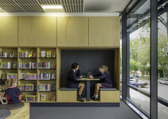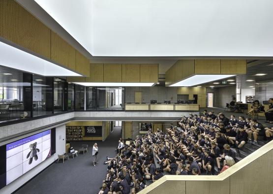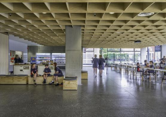 The Gipson Commons is a three level, above ground education building for Kindergarten to Year 12 at St Michaels Grammar School in St. Kilda.