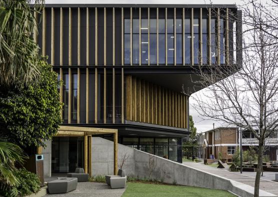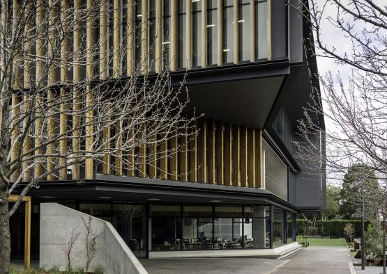 As beautiful as timber is as a finish, it can perform a multitude of other purposes. In this building it forms the sun shading (externally) as well as the acoustic attenuation (internally) on top of its already appealing aesthetic.