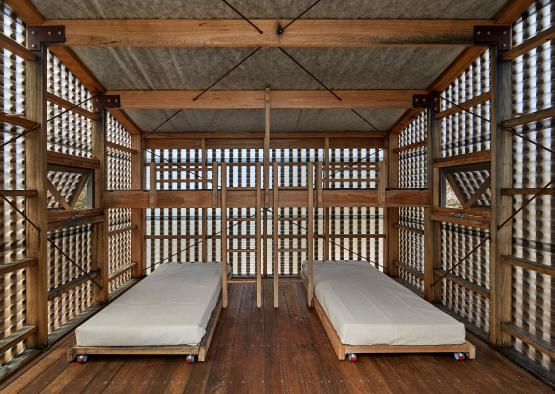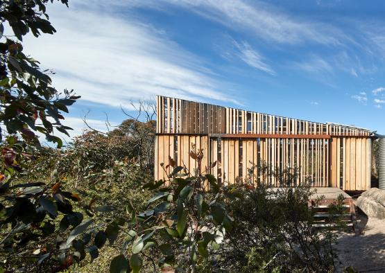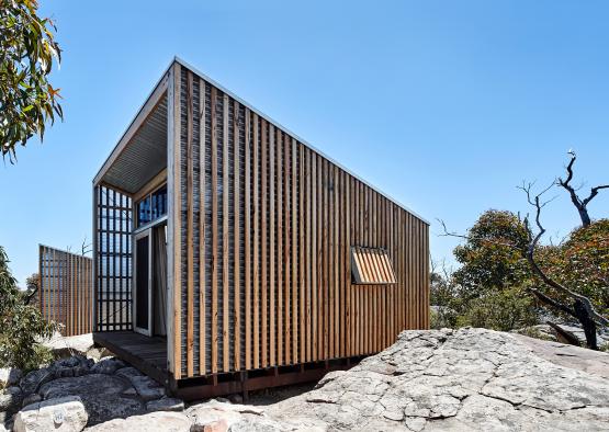 Prefabricated structural timber modules allowed for remote construction. This was beneficial both to creating an accurate and quality result during construction, but also for minimising disturbance to the sensitive landscape. The finished modules could be delicately placed on site in days rather than a team of workers spending months on site. A variety of cladding options utilised timber in differing ways, thereby creating a variety of shelter designs responding to the nature of each campsite. The structures are elemental, raw, and enduring, over time they will weather and age, thereby becoming part of the unique Grampians (Gariwerd) country.