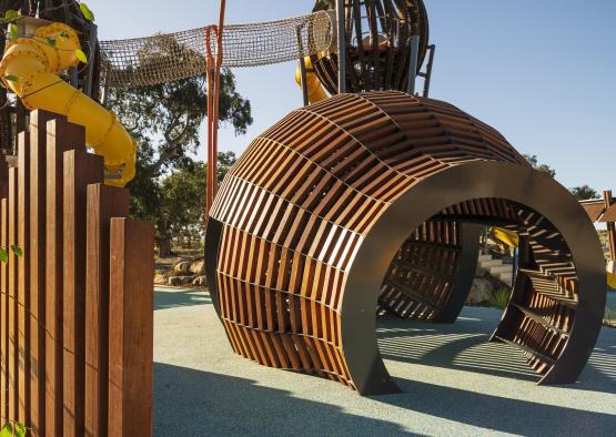 Olivine Gumnut Park was created as an essential early social building block for the development of a new community situated within the suburb of Donnybrook, in the northern outskirts of Melbourne. The adventure playground landscape design is a realisation of a vision that celebrates timber’s integral role in creating both a community hub and enhancing the surrounding natural environments.