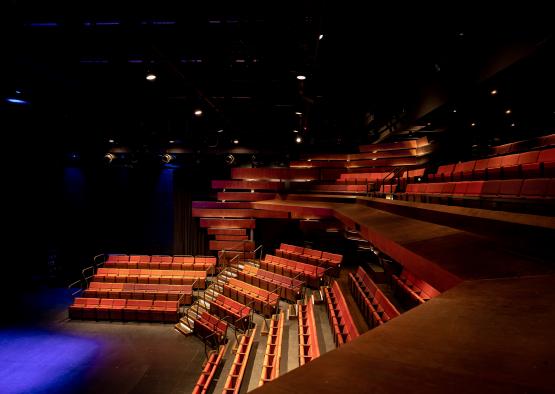 Panellised diffusive timber fins made from stained birch plywood form the acoustic wall linings in the recital hall, including the laser cut diffusion screen behind the concert platform. Stained Tasmanian plywood is used as diffusive acoustic panel ‘boxes’ in the Studio Theatre.