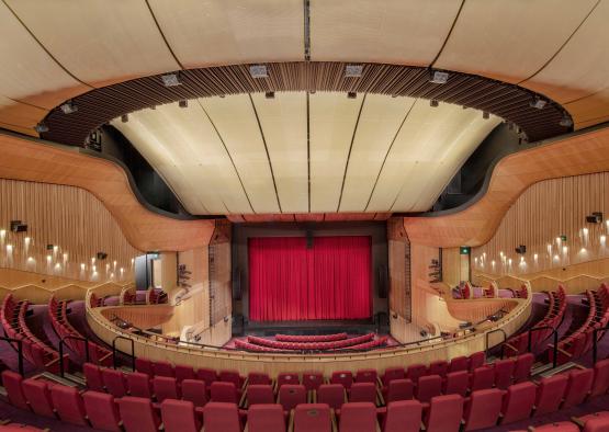An architectural drama was created through faceted timber surfaces and complex curves, which facilitates an ambience of excitement and expectation for the show. The timber surfaces expertly integrate house lighting- a further technique for introducing a sense of civic elegance.