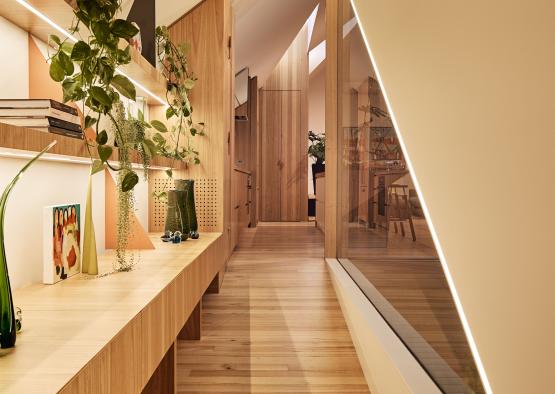 The strong use of timber was a natural choice for the project, in order to inspire a familiar sense of memory from their previously loved homes. Timber floored living zones are connected via ramps internally and externally for universal access, as the couple plan for longevity in the home, well in to their senior years.