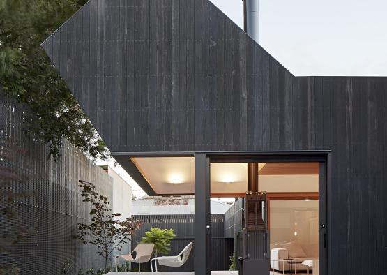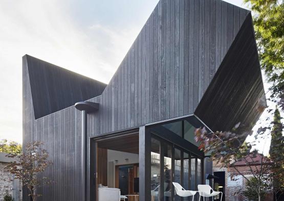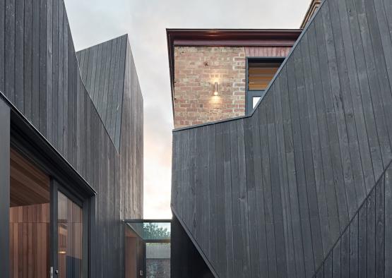 This inner city property features precise formal geometry of crafted quality. By using the traditional Japanese yakisugi method of wood preservation, the project is mindful of both its historical significance and the sustainability of the finished extensions.