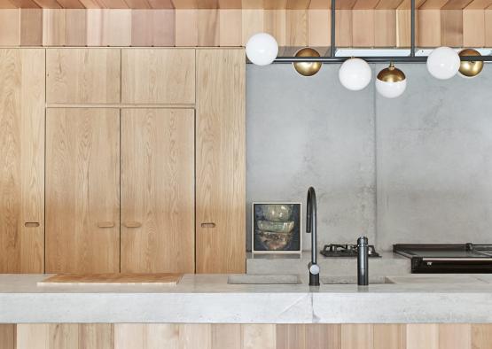 • Solid cedar (internal; wall lining/panelling to kitchen, dining, pantry, powder room and living)