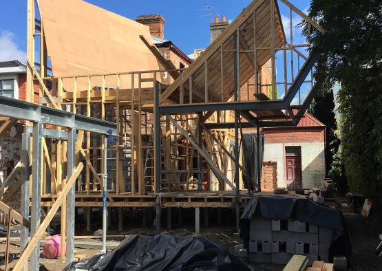 Custom designed board and batten profiles with very small variations in width also allowed the precise formal geometry of the timber-clad extensions and accommodated differences between the varying, raked roof pitches and walls, ensuring the appearance of alignments between the profiles.