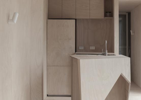 Plywood has also been used for all joinery, creating a united material palette, that feels warm and cohesive throughout the compact dwelling.