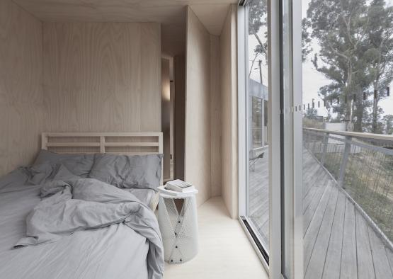 The core of House 28 in Wye River is made from three 20ft shipping containers. Designed by Studio Edwards, the soft plywood interior is contrasted with an armour like exterior to protect against the fire potential in the densely bushed coast.