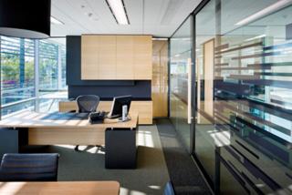 The minimalist design and use of glass in the partitions allow the timber doors to have a greater presence in the space than usual. Set against steel, glass, stone, concrete and sheet linings, timber finishes provide visual relief that other products cannot match, says Stephen Gunn, project architect, Cox Rayner.