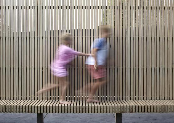 The subsequent form is created using an innovative structural system of laminated pine blades that are placed on the outside of the building envelope to enable expansive glazed views to the rear garden. The blades are simultaneously used as primary structure, finished surface and sun shading. Minimal steel was required and the blade system was erected more quickly and substantially cheaper than if a conventional steel portal frame was used.