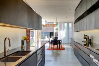 Winner of the best residential fit-out at the 2014 Australian Timber Design Awards, the home’s many timber elements include a striking grey ironbark stair, which unifies the home and traces the path of circulation. The timber-lined stairwell connects all three levels and showcases the inherent beauty of timber.
