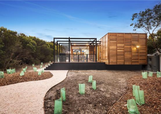 Timber enabled the building to be prefabricated delivering higher construction tolerances that reduce waste and reducing site impacts of noise and light pollution. The timber subfloor structure and screw pile foundation system minimise the disturbance of existing vegetation and top soil, sediment laden run off and the use of portland cement and coastal sand. The timber framed construction system is designed for disassembly to facilitate end of life recycling and/or adaptive re-use. The inclusion of ARKit’s vented timber cavity wall system increases thermal insulation performance by reducing thermal bridging. Offsite construction enabled the building to be tested and calibrated prior to site installation.