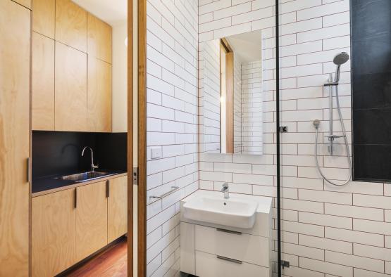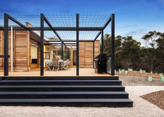 The project features a building envelope that has been critically analysed to achieve the optimal thermal performance, optimisation of passive design principles, vented wall cavity to reduce thermal bridging and improved thermal performance. Design for the maximum use and infiltration of natural light, thermally broken window frames and double glazing for superior thermal performance, air tight interfaces between envelope elements to reduce infiltration losses and enable air-tight environments. Specific materials and environmental features included on the project are: pergola and planters for passive solar control, rainwater tanks, water saving appliances and fixtures, vented cavity wall construction, high performance air tightness wall and roof membranes, low wattage heating panels, ceiling fans, LED lighting, FSC and PEFC certified timber and low VOC finishes. The project achieved a 6 star NAThers rating and is compatible to future upgrades for off grid energy and water systems.