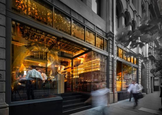 Circulating around the 600 seat venue, the gymnastics of the built forms work to interlink the restaurant, bar and café. The original brick and sandstone features are intelligently juxtaposed by the smooth Australian hardwood veneers that are further layered by an adaptable lighting scheme. The space now serves not only as a hallmark for the coffee company themselves but also as a destination for the many end consumers in Sydney’s CBD.