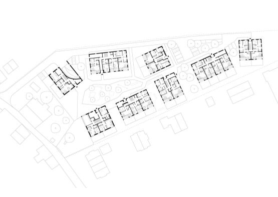 The eight structures that make up the housing estate are all designed to fit proportionally with the heritage building on the site- 'Zürcherhaus'. None of the structures have been built taller than the original building in order to maintain its prominence.