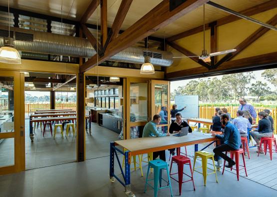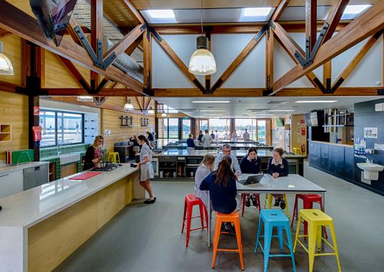 The eucalypt woodlands found around the site consists of native tree species such as ironbark, yellow box and river red gum, and the uses of these timbers for furniture is an overarching theme throughout the school.