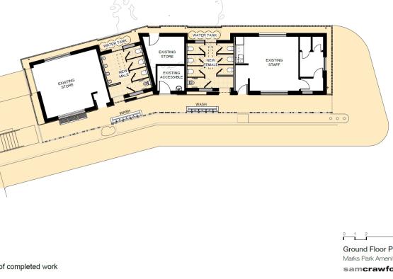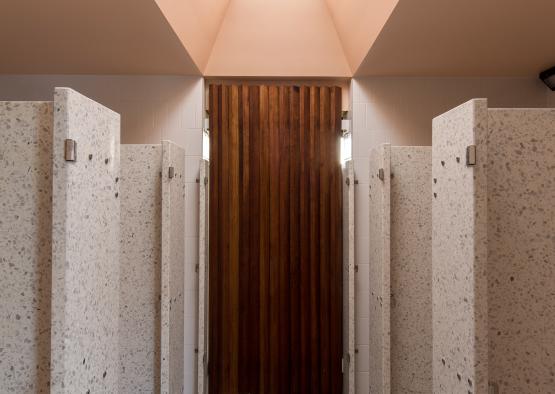 The challenge was to transform the existing building and recycle it into a building worthy of its spectacular location. The amenities have been significantly upgraded and reconfigured to increase the capacity of male and female toilets.