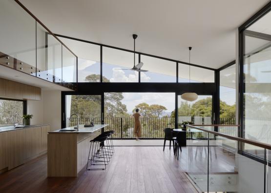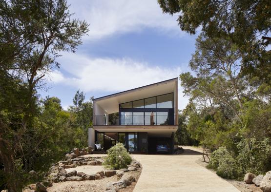 Located on a long and sloping site along the Mornington Peninsula, the McCrae Bush house is a dwelling that was inspired by the colours and textures of its unique surrounding context of native bushland.