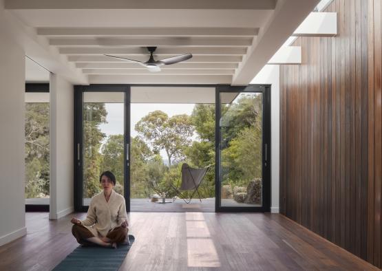 The clients of McCrae Bush House were believers of Zen Buddhism, which teaches the importance of rebirth and reincarnation. The use of recycled materials became an important reference to this principle, embedded within the building. Recycled timbers were also chosen to avoid felling new trees, and to provide a new home for demolished building materials that often end up in landfill.