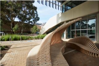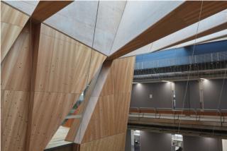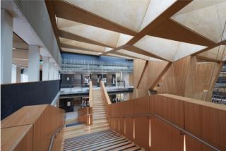 Melbourne School of Design incorporates innovative structural systems. Engineered laminated veneer lumber (LVL) timber beams have been used in the atrium roof structure to reduce the embodied energy of the building.