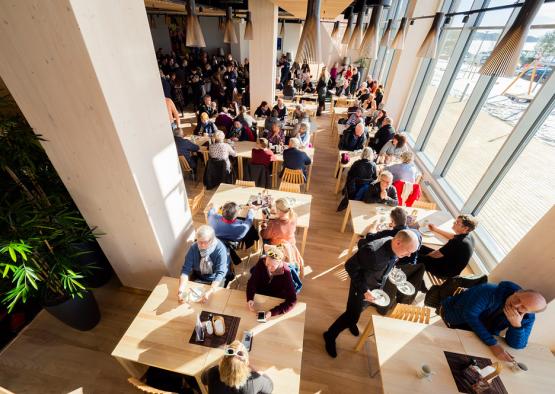 Inside the structure, the bulk of the raw CLT and Glulam members have been preserved in their built state. Huge timber columns occupy the large-volume communal areas such as the restaurant, providing a warm and light filled interior space. Leaving the structural elements on show creates a connection between the built world and its users, and allows visitors to appreciate the new technology. Timber furnishings and floorboards celebrate the wood construction in the space. Mjøstårnet provides a necessary education for the use of sustainable timber construction going forth.