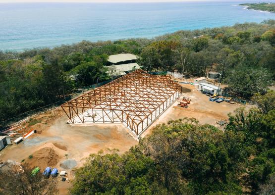 The fabrication of the entire timber superstructure was undertaken in Maryborough, which is less than 2 hours away from the building site at Bargara. Prefabrication was an early decision, which meant all the consultants could be clear on major decisions early. Shop drawings, and the supply and fabrication of the structure, were all tendered as an early works package. This meant that the entire timber structure was fabricated and ready for site installation before the main contractor was appointed. It is highly unusual for a public project to undertake such a novel approach to the procurement aspects, but also one of the great innovations of the project.