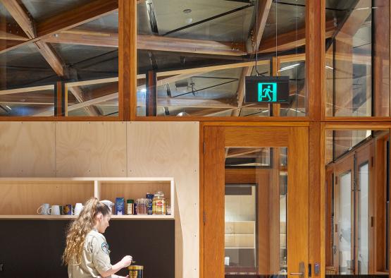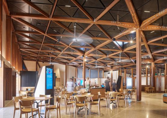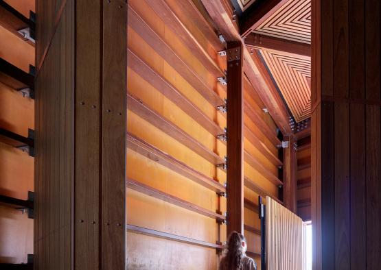 Timber was specified not only for its beauty or close local production, but for its durability in the corrosive coastal environment. The brief stipulated a 50-year design life, and the architects decided that timber would likely outperform steel over this time period, and be available for reuse at the end of its life.