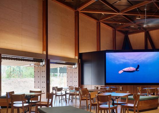 Mon Repos Turtle Centre occupies a sensitive beachside location in a Central Queensland conservation park. The project was envisaged as a complex, but hardy timber frame that celebrated local materials.