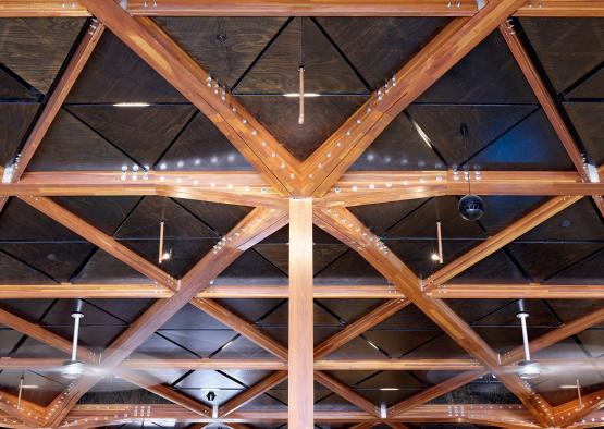 An impressive glulam diagrid structure references the diamond pattern of a turtle's shell.
