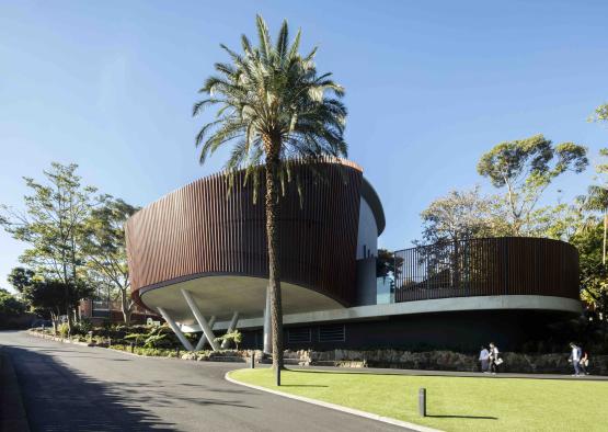 The Centenary Theatre at Taronga Zoo is positioned near the zoo entrance, offering visitors iconic views overlooking the giraffe enclosure to Sydney Harbour. Creating an immersive multi-sensory visitor attraction, the 160-seat theatre delivers a unique learning experience with a 5x25 metre wrap-around screen serviced by large format laser-phosphor projectors and commercial surroundsound speakers. Materials selected enhance and celebrate the zoo’s unique character in response to the brief.