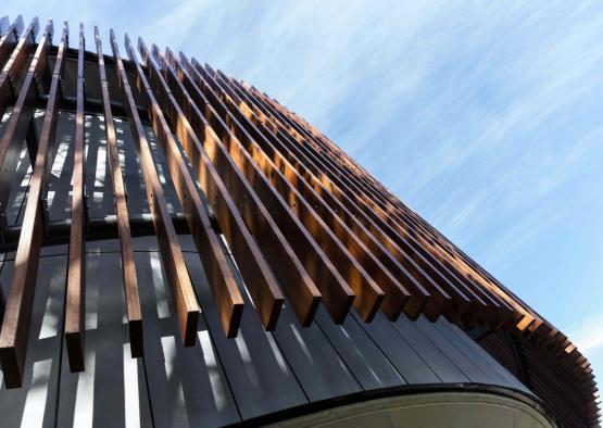 Cladding: Blackbutt was used throughout the project in a number of forms. 180x42mm timber battens form the screening for the building and the landscape, and were finished in Sikkens Cetol Filter 7 teak. The 250x39mm timber weatherboard cladding was finished in Cutek Extreme Clear.