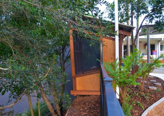 Several bespoke timber structures offer unique design solutions. The treehouse cantilevers the four metre high boundary retaining wall allowing connection with the canopies of the trees below. The lookout, with climbing ramp, spans the existing two metre high retaining wall, which ingeniously connects the previously separated terraced play spaces. Additionally, an elegant curved seat creates a shady and level learning space. The versatility of timber permitted construction within a tight timeframe on a difficult to access site which has ultimately contributed to the success of this project.