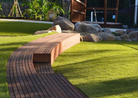- Curved bench seat – incorporates a retaining wall that enabled the design of terraced learning spaces