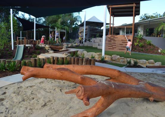 The outdoor play space captures a ‘sense of place’ with the natural bushland backdrop which is reinforced by the many expertly crafted timber elements that also unify the space. The principal use of timber in all play elements allows children the experience of the natural warm touch afforded with timber and to feel connected with nature. The playground elements and their composition allow for imaginative explorations, creative opportunities and physical challenges. Children are afforded a highly rewarding play experience, with the bushland character as a backdrop and the nature-themed play elements fostering a sustained love for the natural environment.