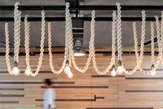 Within the constraints of a tight budget the carefully planked coffee bar wall is a standout. The designers used a template to get the right mix of Douglas fir, walnut and red oak.