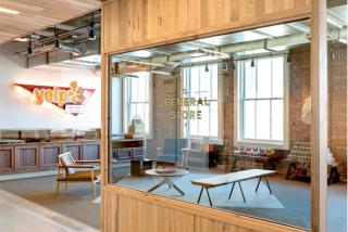 Yelp’s reception area is on the 9th floor, and to make it worthy of a trip up or down in the elevator, the designers created a ‘general store’ – a modern pop-up improvisation on the company’s perceived place in the new world of commercial entrepreneurship.