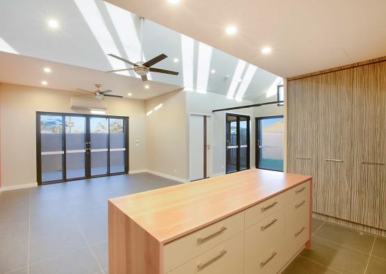This project achieved sustainable outcome through its open plan living arrangement with direct connections to the land; large external openings to encourage cross ventilation; high set windows and ceilings for airflow; and use of Low VOV coatings. The houses achieved an 8.4 Star NATHERS energy rating.