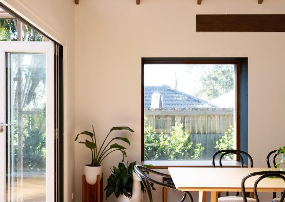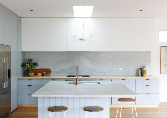 Hardy native blackbutt tongue and groove flooring was used throughout the house to create a warm tone under foot. The joinery picks up on the timber tones through the use of birch plywood kickers and joinery top rails.
