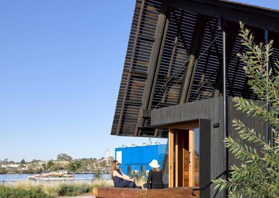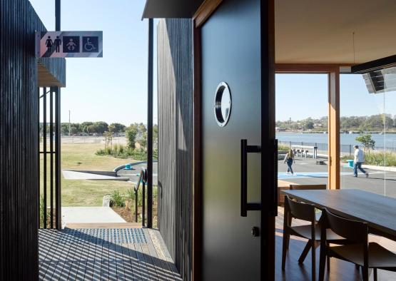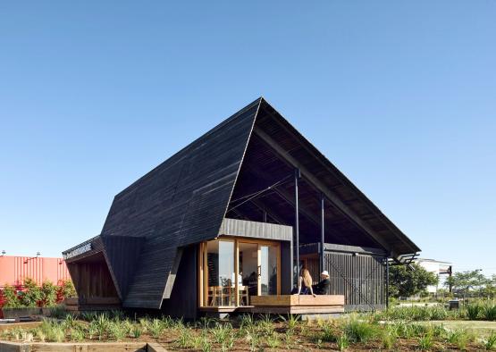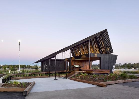 The North Shore Pavilion is a public information hub, amenities block, and multi-functional community space, overlooking the Brisbane River.