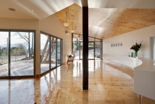 For the frame of the Svarmisk Resort Centre, the design team used F7 KD Pine walls with plywood sheet bracing and seasoned recycled hardwood Victorian Ash posts. The use of timber in the structural design of the project enabled maximum ease of construction, while staying true to the aesthetic specifications in the building brief, which emphasised a commitment to upholding the natural contours of the picturesque surrounds.