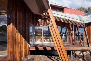 "Timber is a natural, warm material and sustainable use of it - whether by managed plantation sources or recycled timber from the local area - made a lot of sense to the type of architecture and attitude both the client and our office wished to present," says architect, Grant Amon.