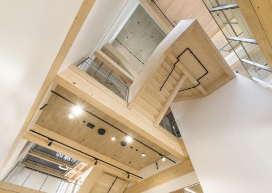 Overall 1650 m3 of timber has been used in the primary structure of the building, storing about 1650 tonnes of CO2 and avoiding 800 tonnes of carbon emissions compared to a traditional concrete building.