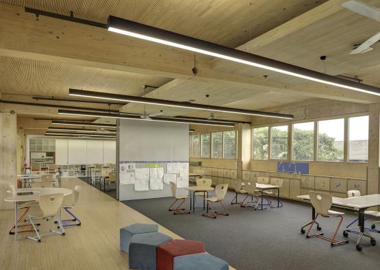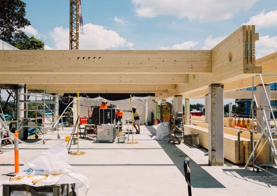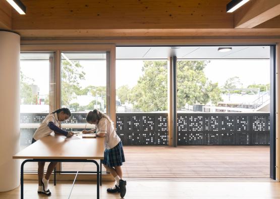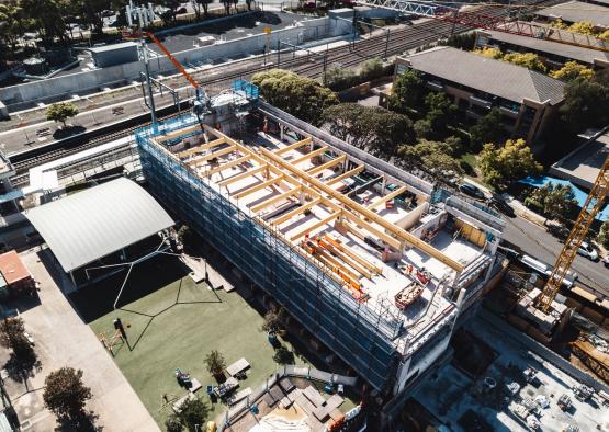The new Our Lady of the Assumption Catholic Primary School (OLA) utilises an existing three-storey concrete frame base built in the 1970s, delivering a modern and exciting learning space. Delivered in two stages, the new school is predominantly constructed using CLT and Glulam.