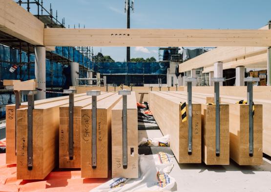 In areas where the CLT is not the final floor finish, Beech LVL engineered timber has been used as the finish.