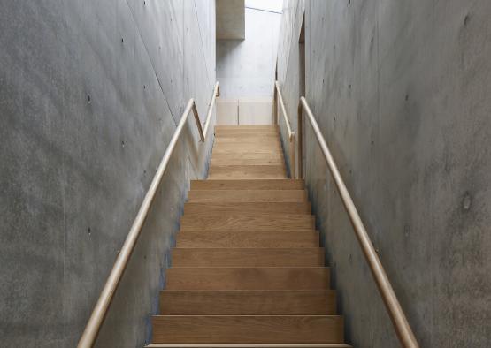 Both spaces feature a restrained palette of materials internally. The gallery spaces are defined by cast insitu concrete shells, accented with various timber elements, brass and tiles. European Oak is used throughout to contribute consistency, warmth and gravity to the building. Timber is used on floors, stairs, selectively as scalloped balustrade panels and also on highly crafted display shelves and custom designed seating elements. The timber brilliantly offsets the coldness of the concrete to create both an austere and welcoming space.