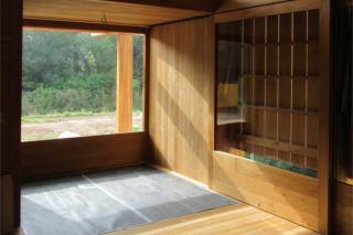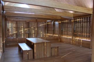 In plan, the cabin is divided up into 10 bays that each measure 1.8 m wide. Some are enclosed, while others form open decks sheltered beneath the overhanging eaves.