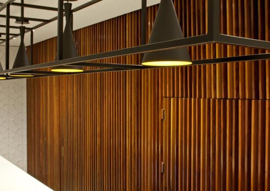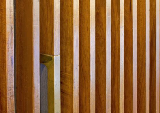 All areas of the theatre and associated spaces where in poor condition and generally taken back to core fabric as part of the refurbishment. That said, a key feature of the spaces was the existing blackwood wall panelling. A decision was made to maintain the panelling in recognition and as a reminder of the unique qualities of the original design. The timber panelling was lovingly restored and Artillery's design solution incorporated both the existing panelling and new timber elements in a way that seamlessly brings together all elements.