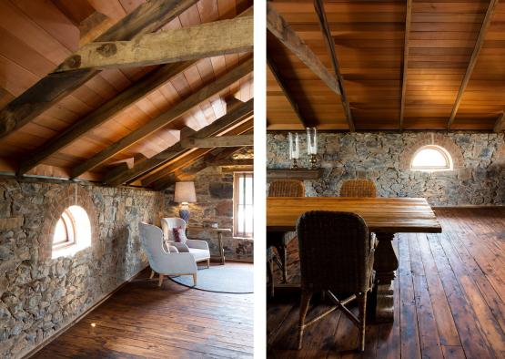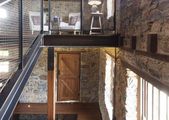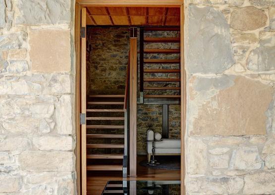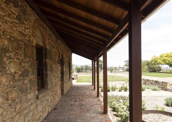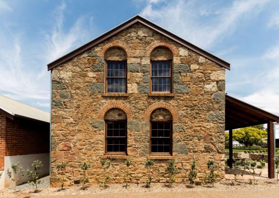 Constructed from local fieldstone, the distinct character of the building has been retained – original timber floors and roof structure refurbished and left exposed. Newly introduced elements are designed to enhance the historical understanding of the building, while celebrating the beauty of the retained original elements. The front timber verandah has been reinstated and is based upon historic photographs, while a glass floor reveals the brickpit, originally used as a cool room or safe. A limited materials palette of timber, steel and glass provide distinct new components that complement the existing fabric.