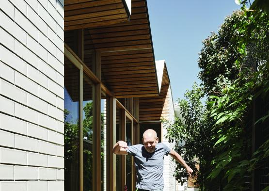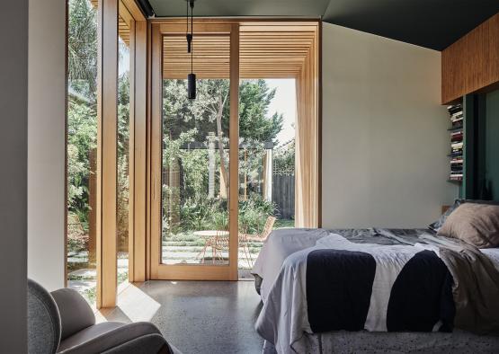 Operable glazing unites the living room with a narrow, stepped garden along the northern edge, extending the interior footprint to give a sense of scale and generosity.